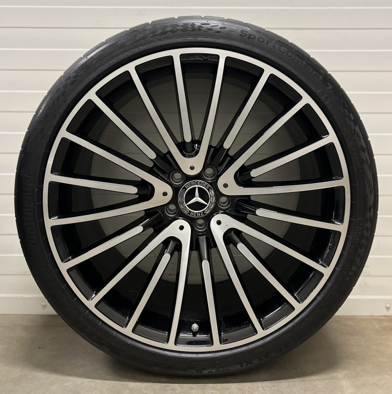Original Mercedes S-Class (W223) AMG wheels with lightly used summer tyres Continental Sport Contact 7 2 pcs 255/35 R21 98y and 2 pcs 285/30 R21 100Y and tyre pressure sensors.