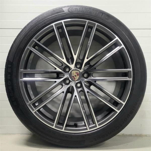 Original Porsche Macan (Turbo 4) wheel set with lightly used summer tyres Continental Conti Sport Contact 5P SUV (N0) 2 pcs 265/40 R21 101Y and 2 pcs 295/35 R21 103Y and tyre pressure sensors.